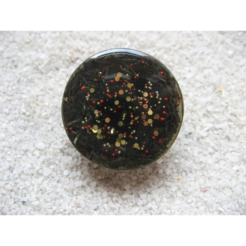 fancy ring, black/red/gold microbeads, resin