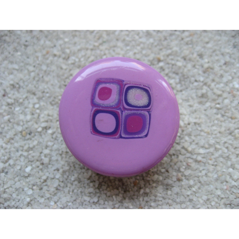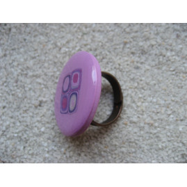 Graphic ring, lilac / purple, in varnished Fimo