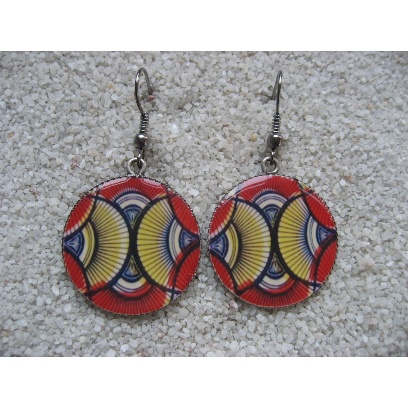 Small African earrings WAX, set in resin