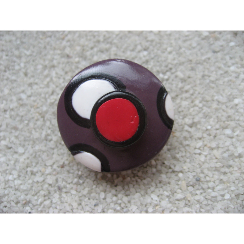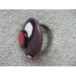 copy of Large pop ring, white/red motifs, on plum background, in Fimo