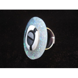 copy of Large graphic ring, multicolored fimo cabochon, on a black resin background