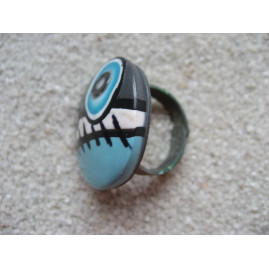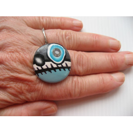 copy of RING graphic, turquoise / white / gray, in Fimo