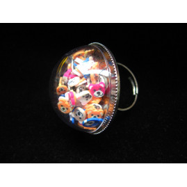 Large dome ring, mobile multicolored cubs, in a plexi half-sphere