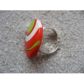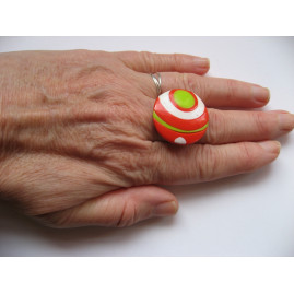 copy of Pop ring, white / green patterns, on orange Fimo background