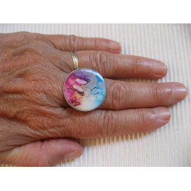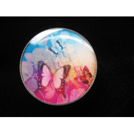 Small fancy ring, round fuchsias / blue butterflies, set in resin