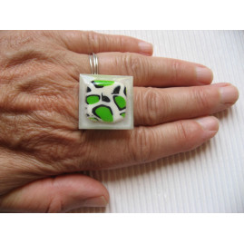 copy of Square RING, multicolored fimo cabochon, on a black resin background