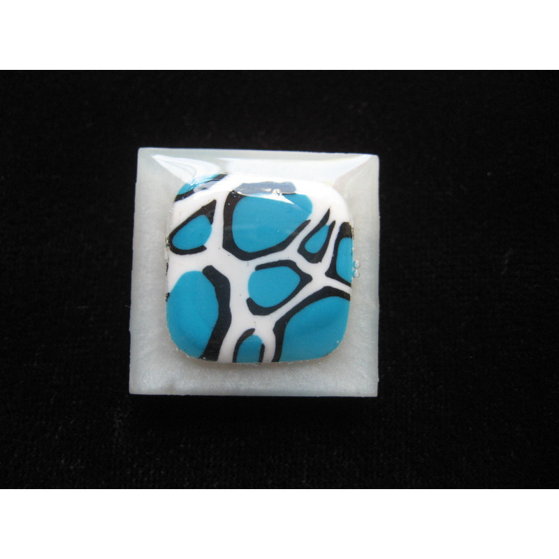 copy of Square RING, multicolored fimo cabochon, on a black resin background