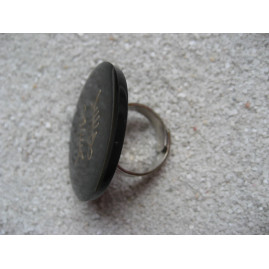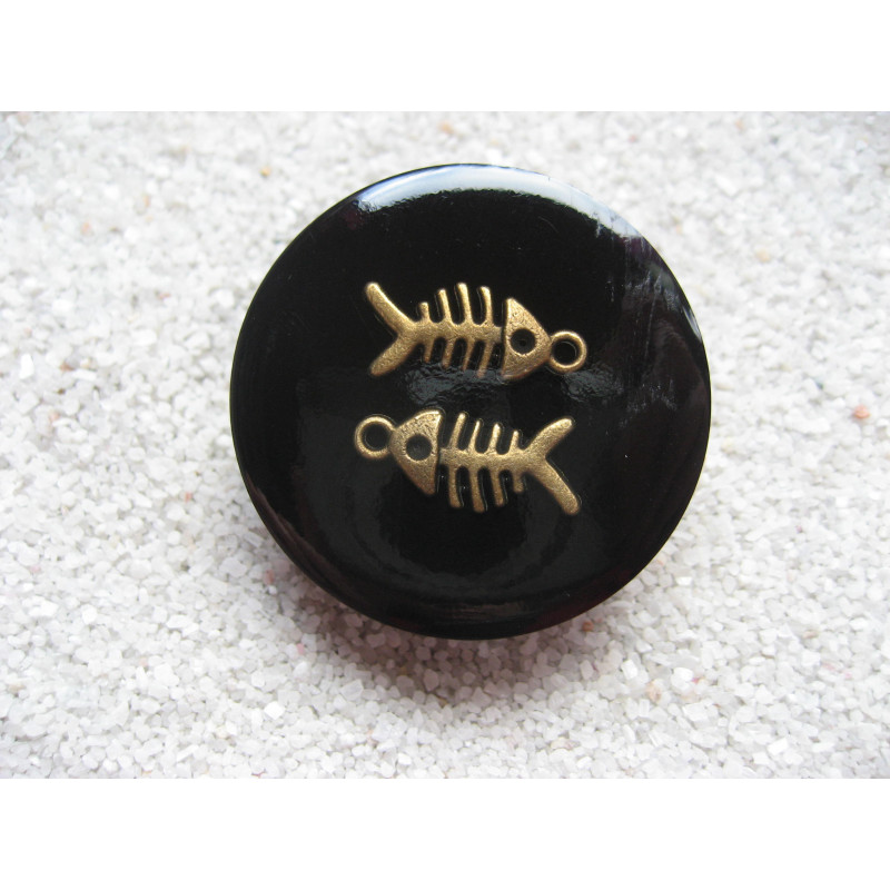 Grande bague arêtes de poisson bronze sur fond noir en résine