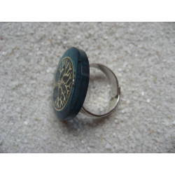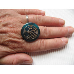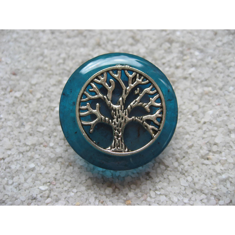 BAGUE Arbre de vie argenté sur fond bleu en résine