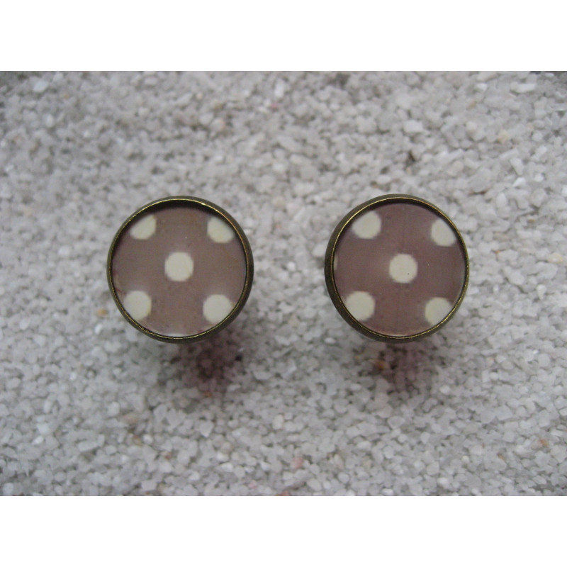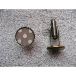 Boutons de manchette pois blancs sur fond marron sertis en résine