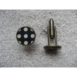 Boutons de manchette pois blancs sur fond noir sertis en résine