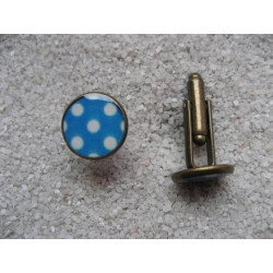 Boutons de manchette pois blancs sur fond bleu sertis en résine