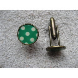 Boutons de manchette pois blancs sur fond vert sertis en résine