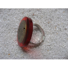 BAGUE graphique Live your dream sur fond rouge orangé en résine
