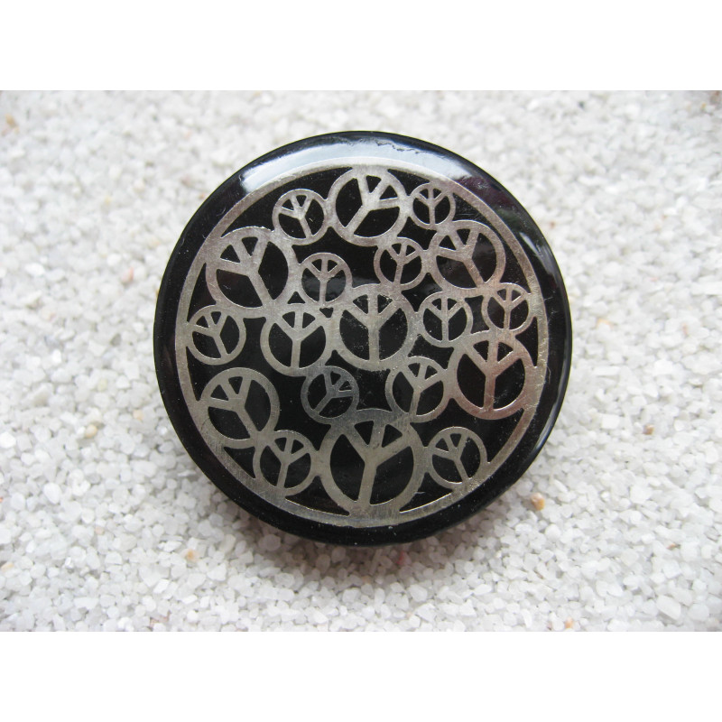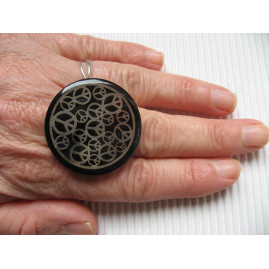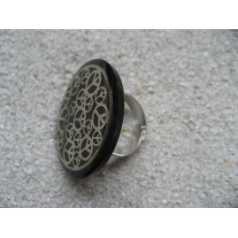 Grande bague Estampe peace and love sur fond noir en résine