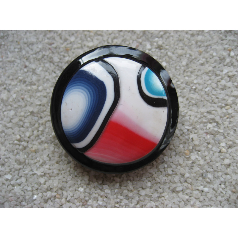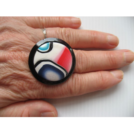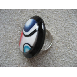 Grande bague cabochon multicolore en fimo sur fond noir en résine