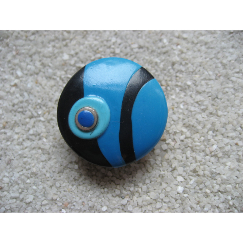 Bague cabochon graphique bleu et noir en Fimo