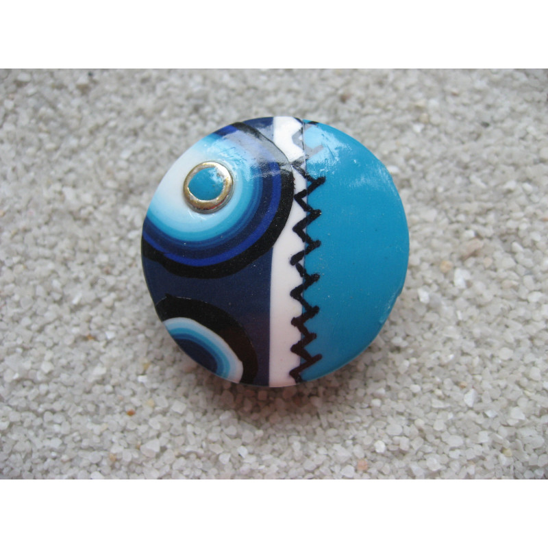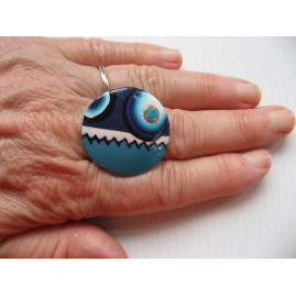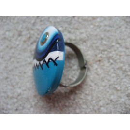 Bague cabochon camaieu turquoise et bleu en Fimo