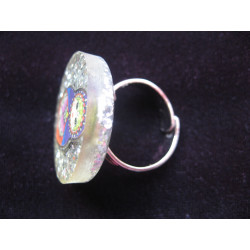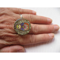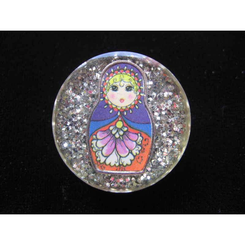 Bague fantaisie poupée russe sur fond argenté en résine