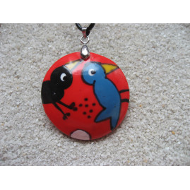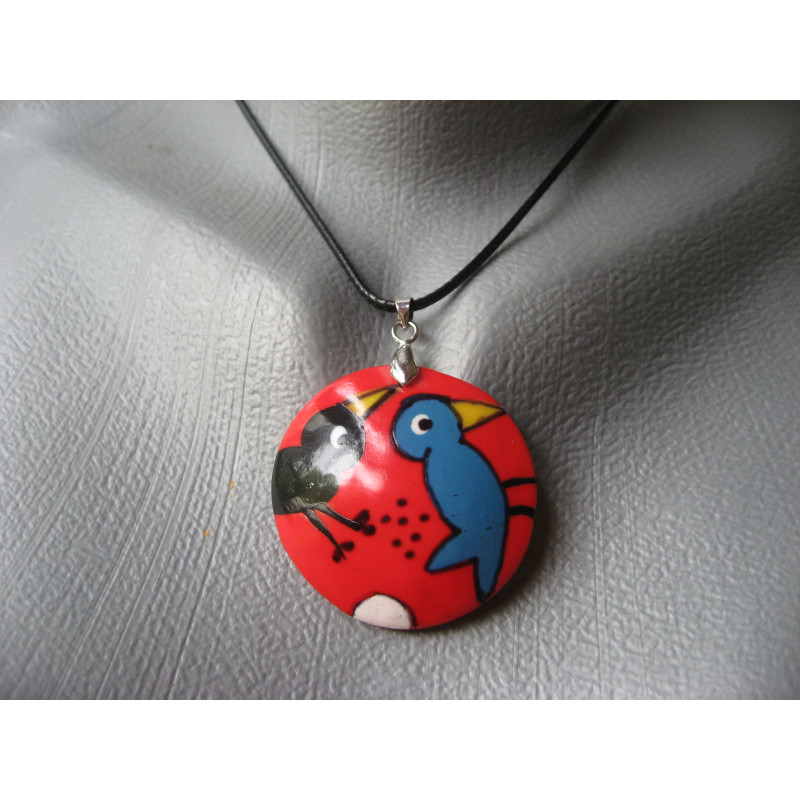 copy of Pendentif cabochon oiseaux amoureux sur fond rouge en fimo