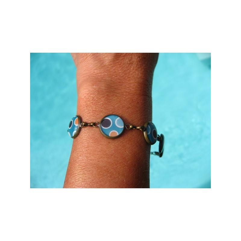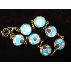 BRACELET petits cabochons, pois oranges/turquoises/marrons