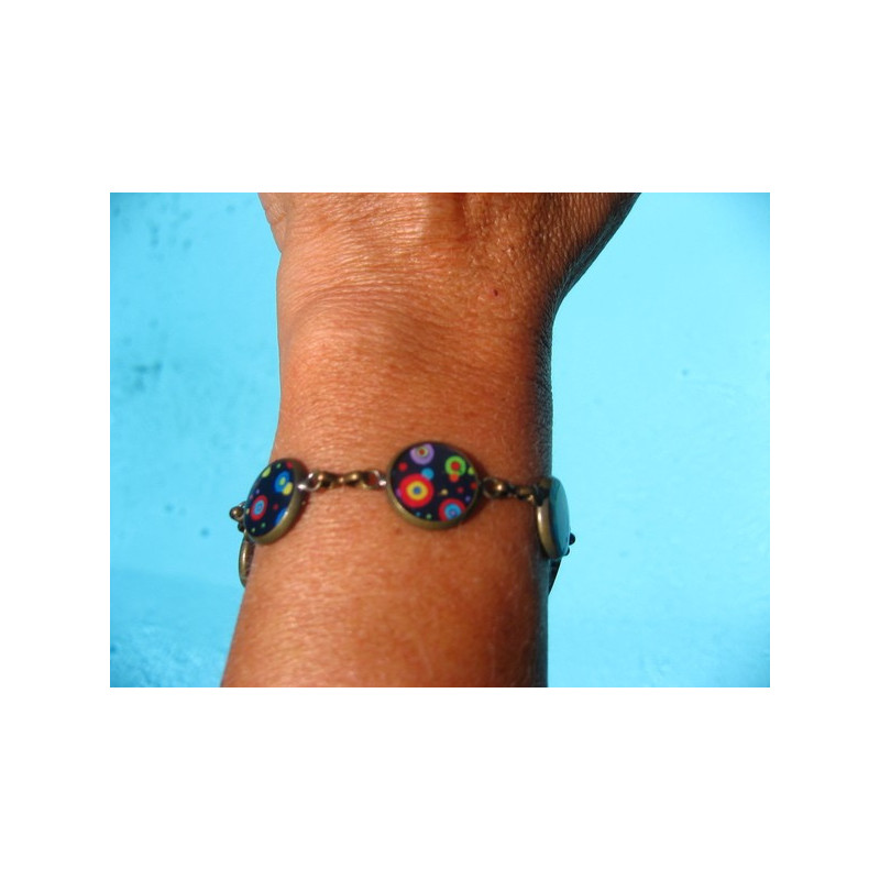 BRACELET petits cabochons pois multicolores sur fond noir