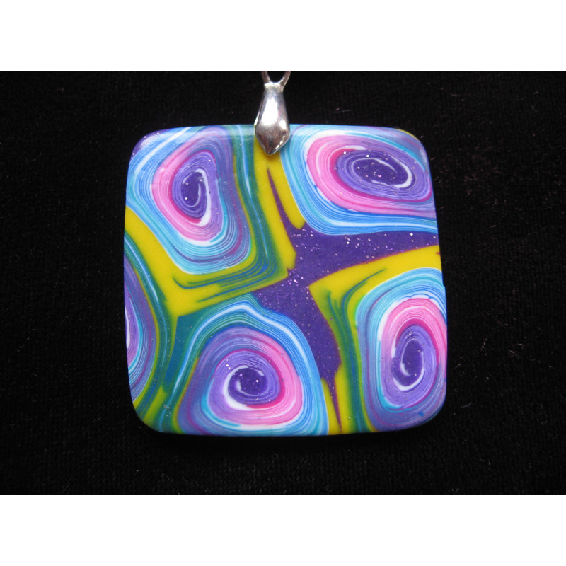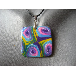 Pendentif mosaïque vert et prune en fimo