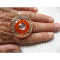 Grande bague perle blanche sur fond orange et blanc nacré en résine
