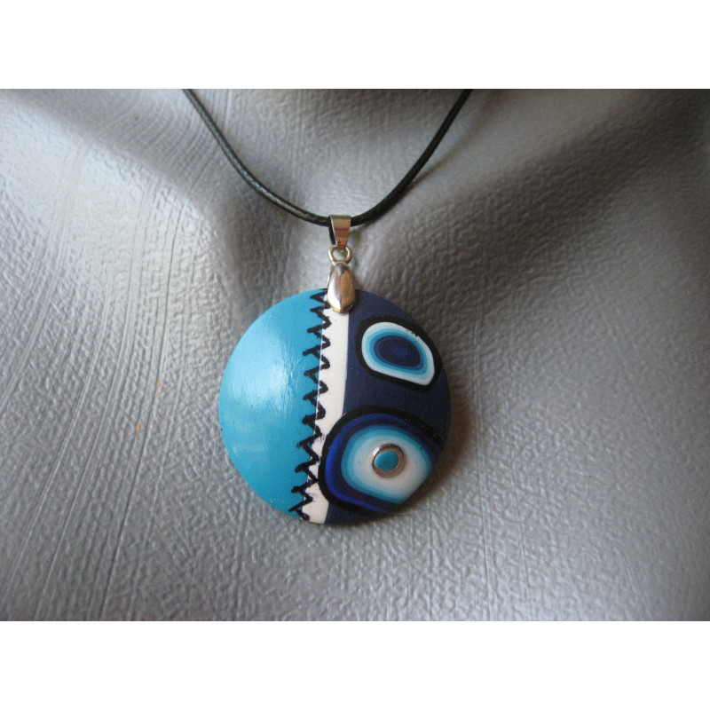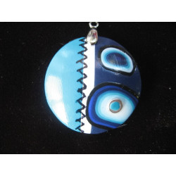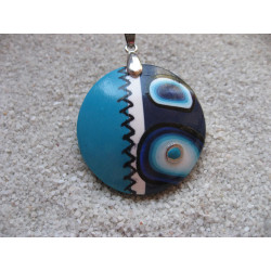 Pendentif cabochon camaieu turquoise et bleu en fimo
