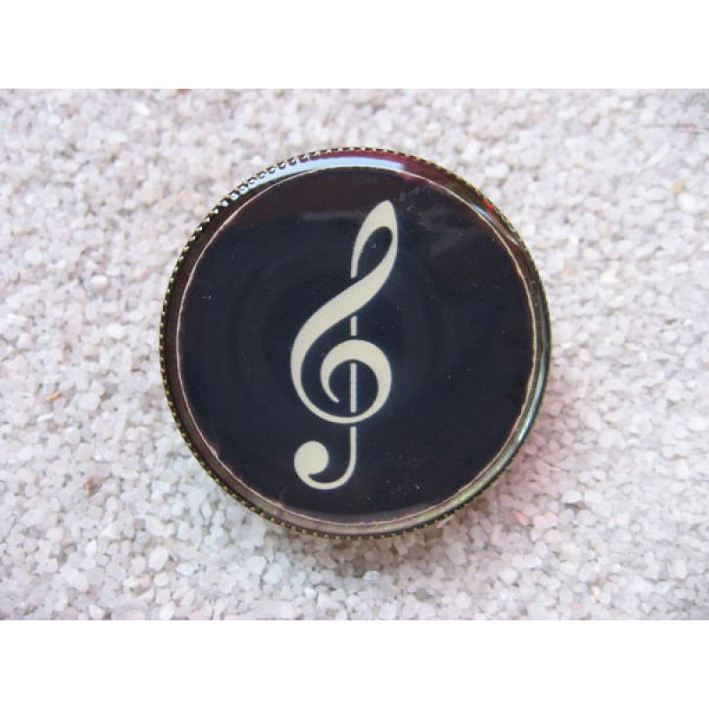 BROCHE Clé de Sol sur fond noir sertie en résine