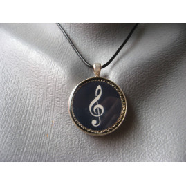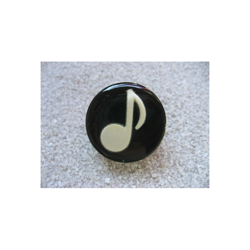 BAGUE note musicale beige sur fond noir en résine