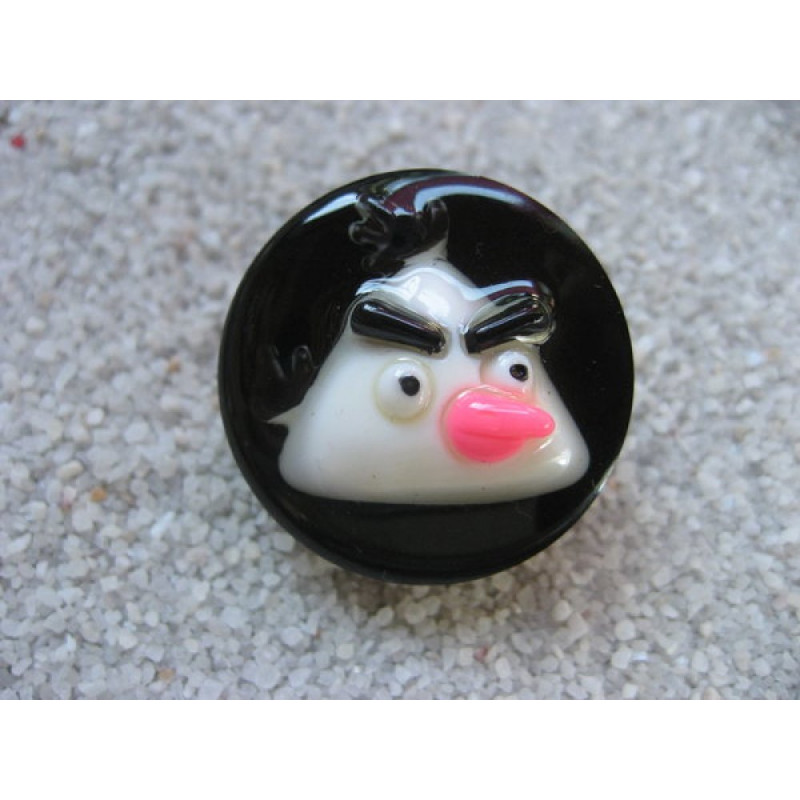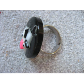 BAGUE Kawaii piaf blanc sur fond noir en résine
