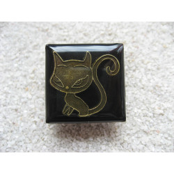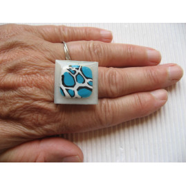 Bague carrée cabochon marbré turquoise et blanc en fimo sur fond blanc en résine en résine