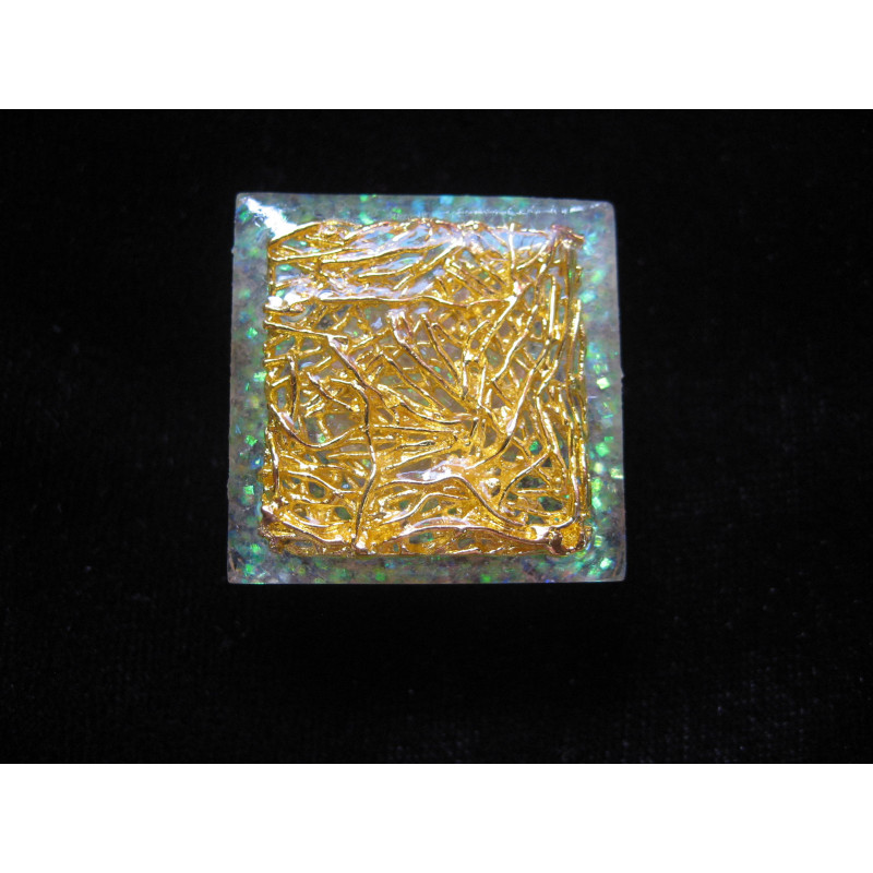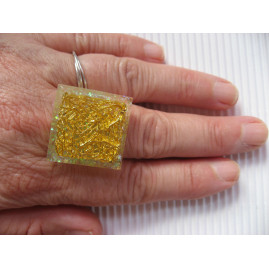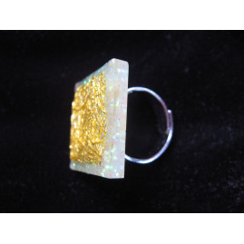 BAGUE carrée estampe dorée sur fond blanc en résine