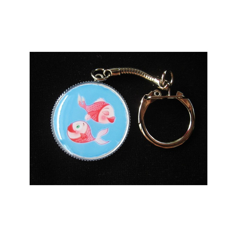 Porte-Clés fantaisie Poissons amoureux serti en résine