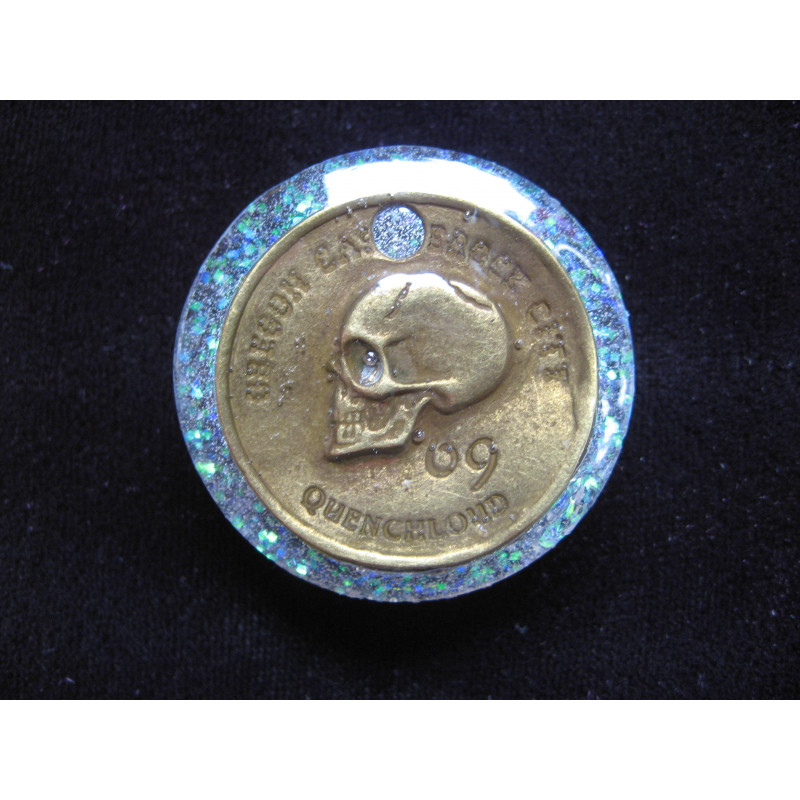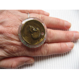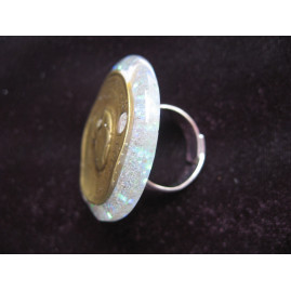 Grande bague tête de mort bronze sur fond blanc nacré en résine