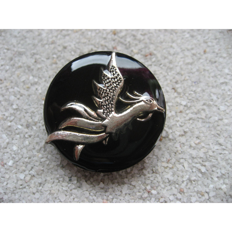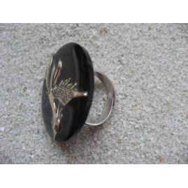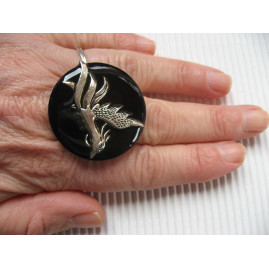Grande bague Steampunk dragon ailé argenté sur fond noir en résine