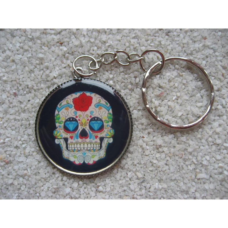 Porte-Clefs Steampunk tête de mort sur fond noir