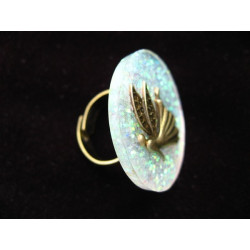 Grande bague fée danseuse sur fond blanc nacré en résine