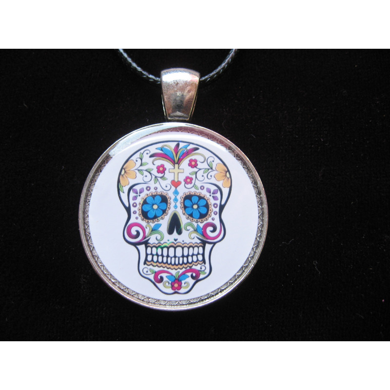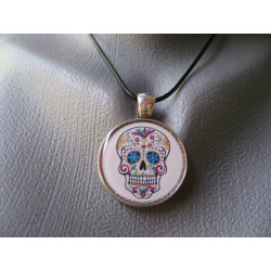 Pendentif tête mexicaine sur fond blanc serti en résine