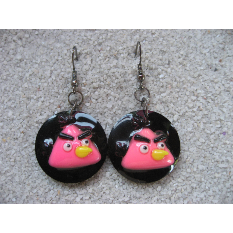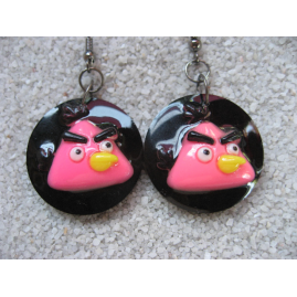 Boucles d'oreilles Gang de Piafs roses sur fond noir en résine