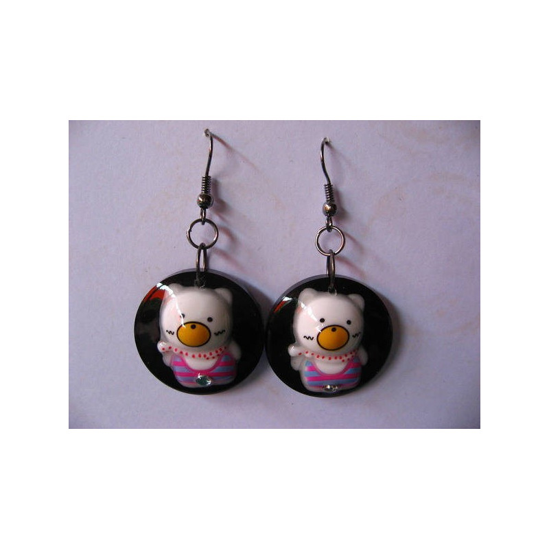 Boucles d'oreilles oursons kawaii sur fond noir en résine