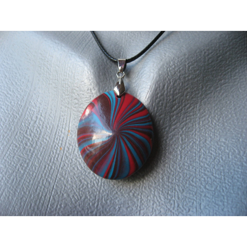 Pendentif ovale spirale turquoise marron rouge en Fimo