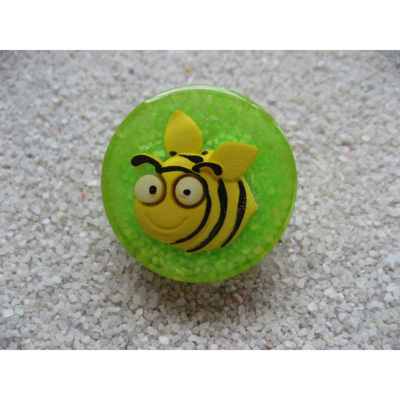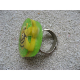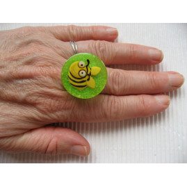 Bague cabochon Abeille Cartoon sur fond vert en résine