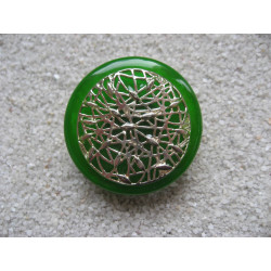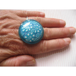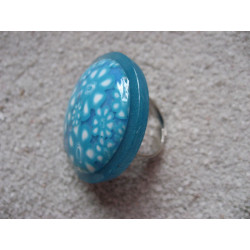 Grande bague cabochon fleuri turquoise sur fond bleu nacré en résine