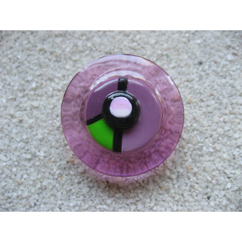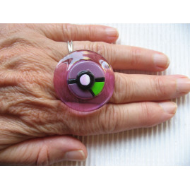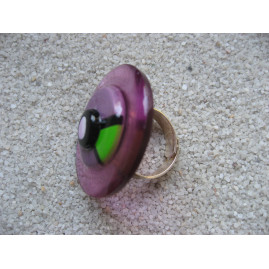 Grande bague cabochon géométrique en fimo sur fond prune en résine