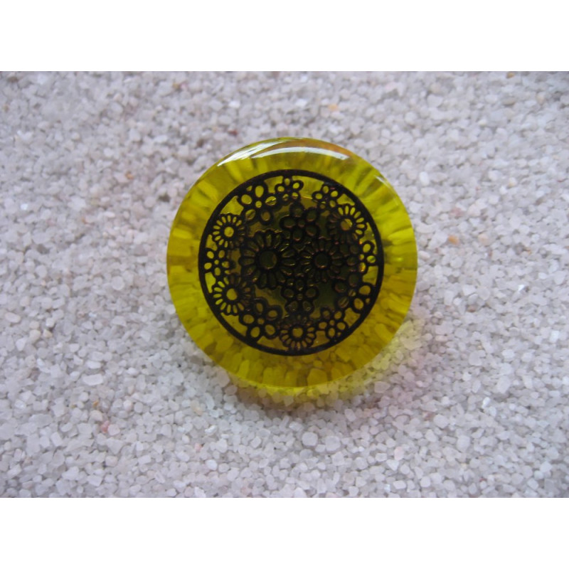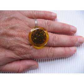 BAGUE fantaisie Estampe bronze sur fond jaune en résine