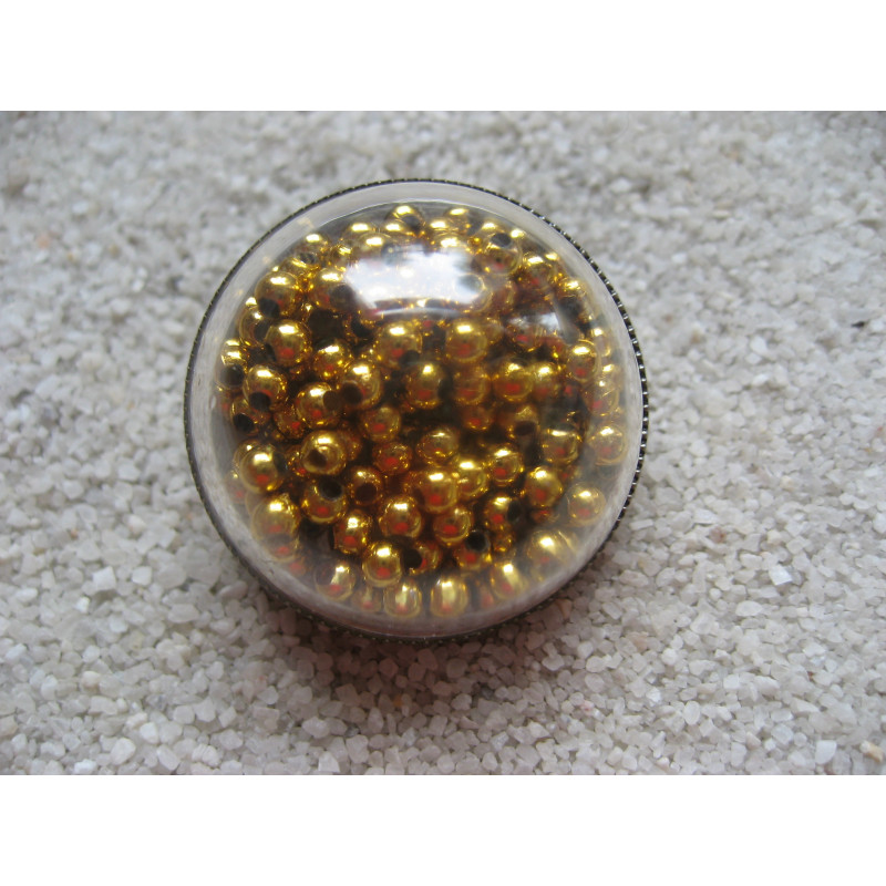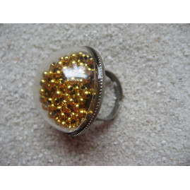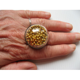 BAGUE dome perles dorées mobiles dans une demi-sphère en plexi