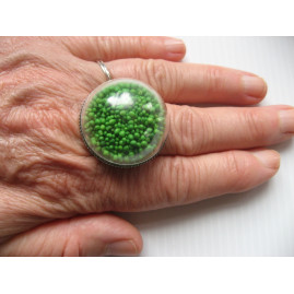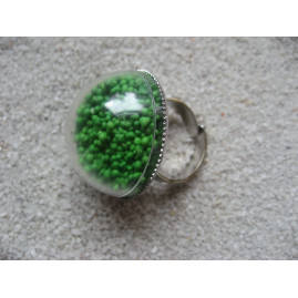 Bague dome miniperles vertes mobiles dans une demi-sphère en plexi
