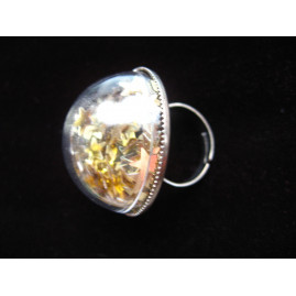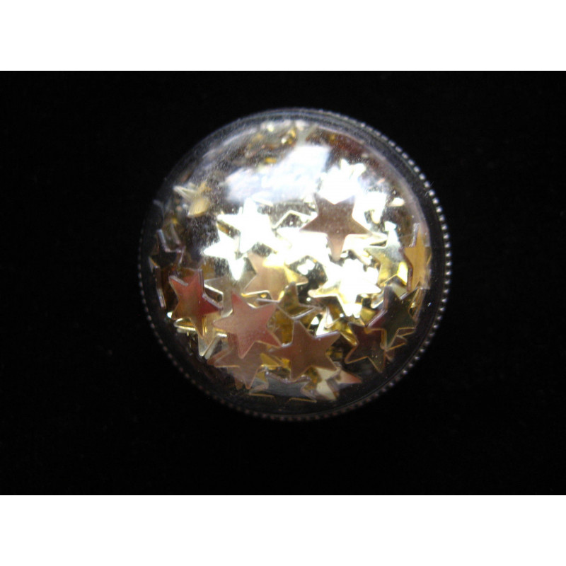 Bague grand dôme étoiles dorées mobiles dans une demi-sphère plexi